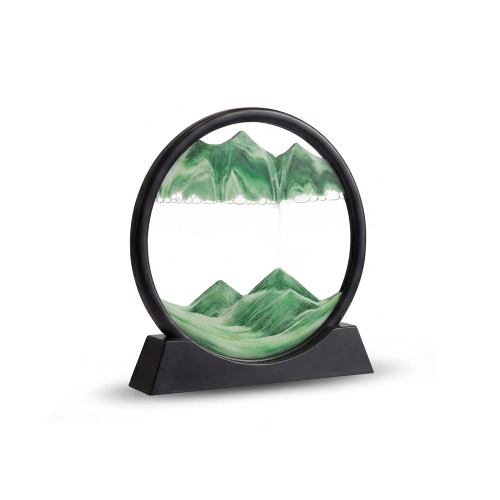 The “Moss Verse” Art Hourglass from SandartFlow is the quiet poetry of organic growth. Its serene moss green palette, built upon a primary green with secondary white and gold highlights, shows soft sands settling into gentle, moss-like layers. This living sculpture brings a sense of peaceful rejuvenation and grounded serenity.